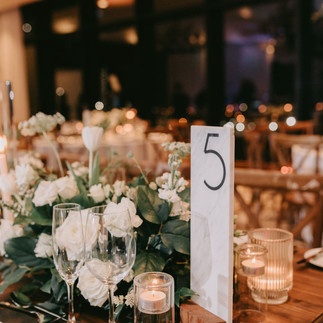 The wedding design was a lush masterpiece, featuring modern touches that added a dash of contemporary flair. Marble table numbers and concrete vases brought a sleek and refined edge to the overall aesthetic.
